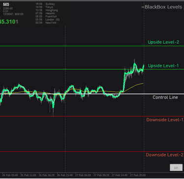 BlackBox levels are hidden, algorithm-based price levels derived from IPDA (Intraday Price Delivery Algorithms) and historical market data to define expected trading ranges for the day. These tools use advanced quantitative methods to identify influential institutional price levels where market reactions commonly occur. Traders apply these levels for entries, stop-loss placement, and profit targets.